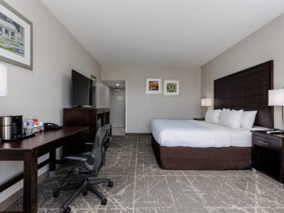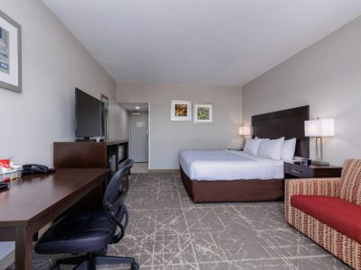 Choose from spacious King Rooms, Double Queen Rooms, and Suites, all equipped with modern amenities like a coffee maker, microwave, mini refrigerator, cable TV with HBO, a bathroom with eco-friendly toiletries. , and more—providing everything you need for a relaxed and convenient stay.